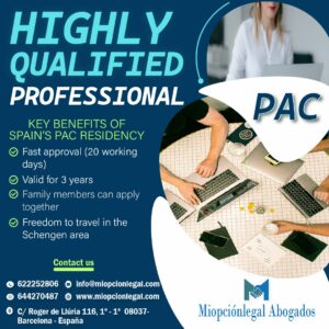 Spain offers an attractive immigration pathway for international talent through the Highly Qualified Professional Residence Permit, regulated under the Spanish Entrepreneur Law. This permit is designed for foreign professionals who have a qualified job offer from a Spanish company and wish to develop their professional career in Spain. At Miopciónlegal